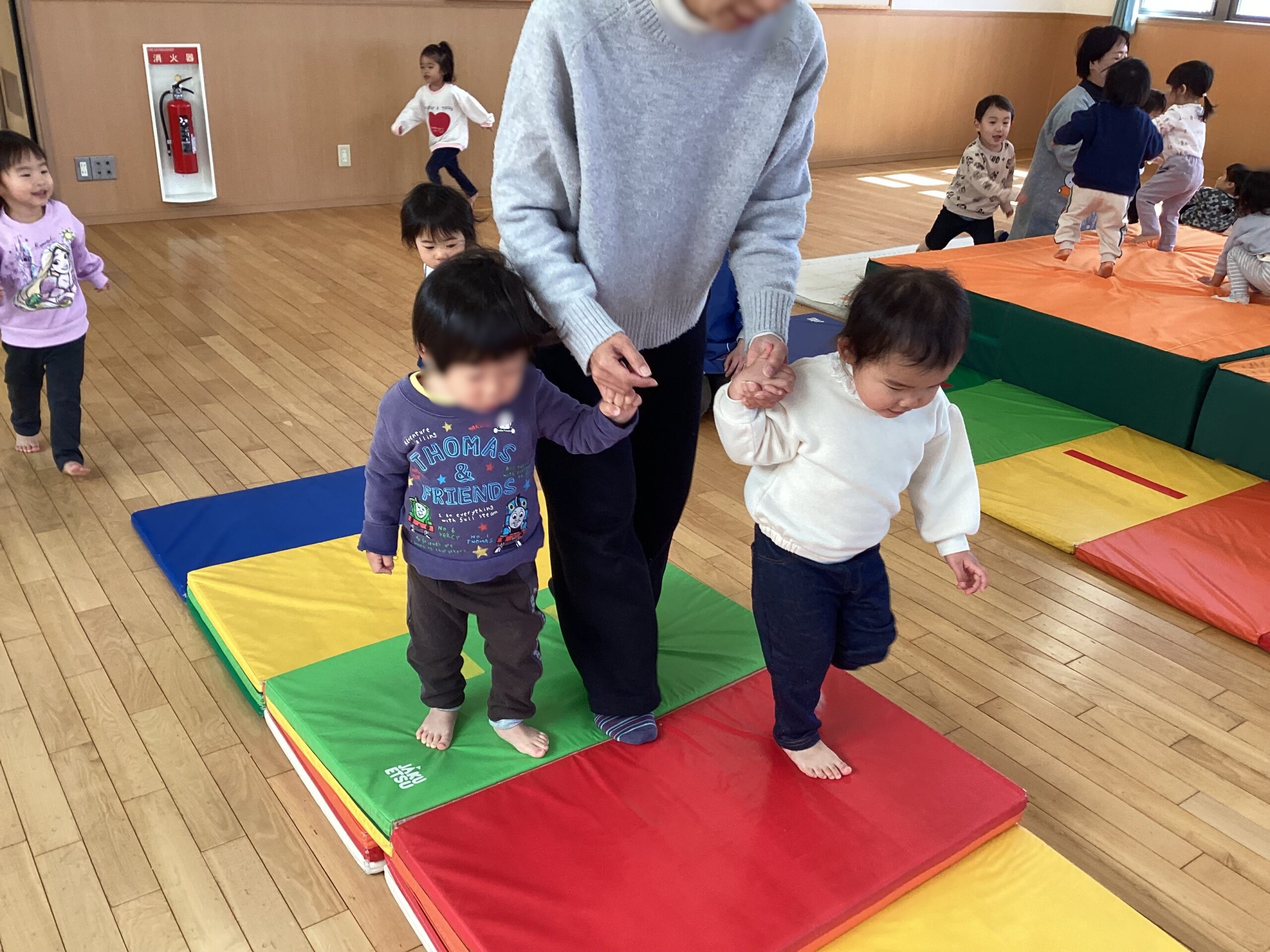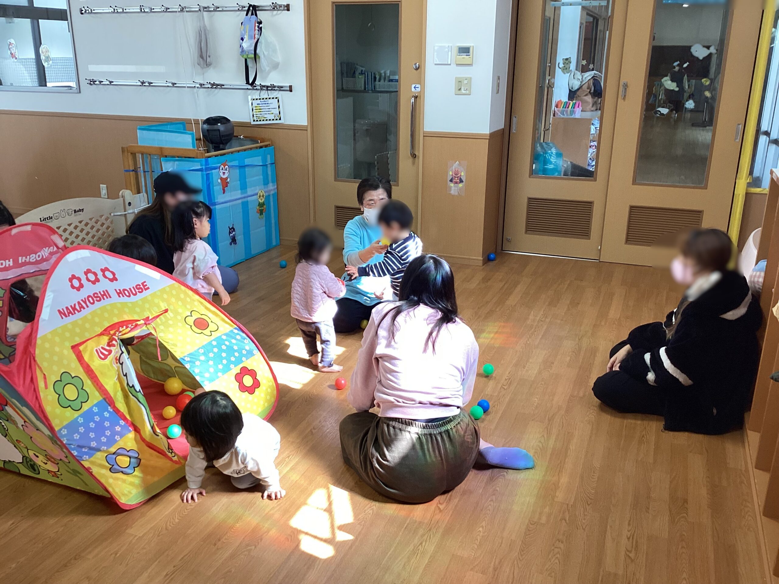 今日は7組の方に参加してもらいました。運動遊びを一緒にしたり、室内遊びを楽しんだりして過ごしました!