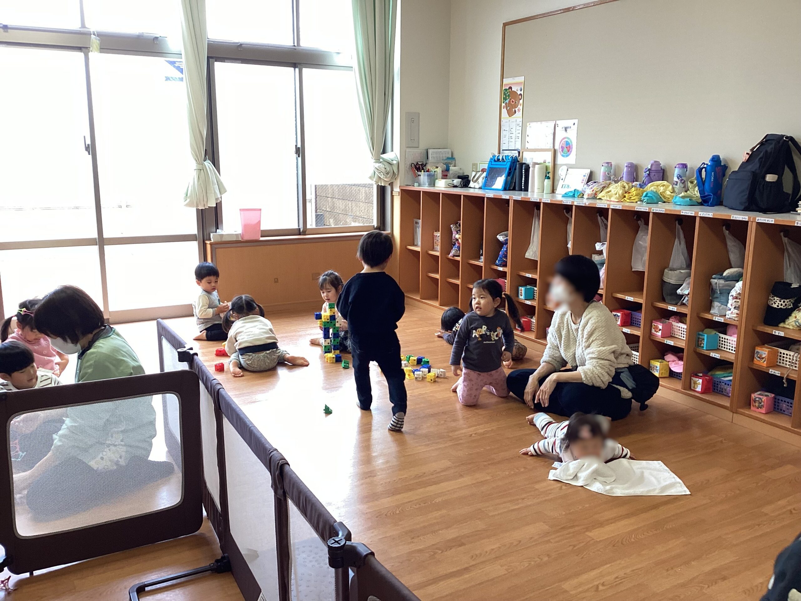 今回は7組の方に参加してもらいました。雨上がりだったので近くへお散歩に行ったり、室内遊びを楽しんだりして過ごしました!